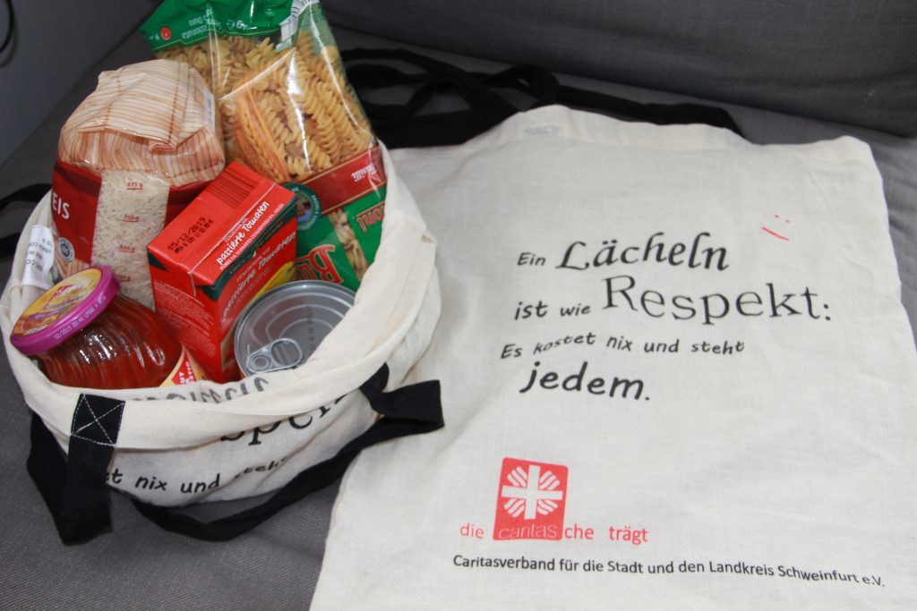 Die „Cari-tasche“ unterstützt Menschen in prekären Notsituationen im Raum Schweinfurt, denen die finanziellen Mittel für die nächste Mahlzeit fehlen. Oft entstehen diese persönlichen Notlagen durch ungeplante Ereignisse, die mit unerwarteten Kosten verbunden sind, z.B. Ausgaben für eine Reparatur oder Medikamente. Betroffen sind häufig kinderreiche Familien, Alleinerziehende oder Senioren, deren Rente zum Leben kaum reicht. Für diese besonderen persönlichen Notfälle hat sich die Vergabe von Caritas-Taschen mit einem Set an Lebensmitteln für mehrere Mahlzeiten bewährt. So kann große akute Not schnell und konkret gelindert werden.