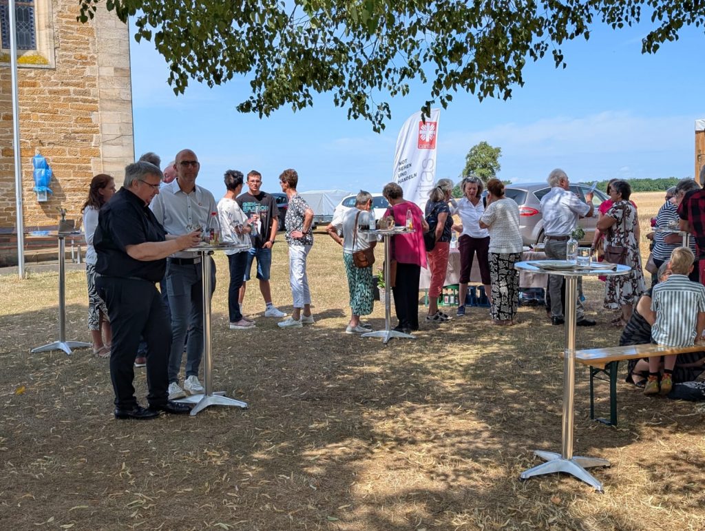 Viele Gäste folgten der Einladung von Geschäftsführer Frank Kupfer-Mauder zur anschließenden Begegnung auf dem schön gelegenen Kirchenvorplatz mit weitem Blick.