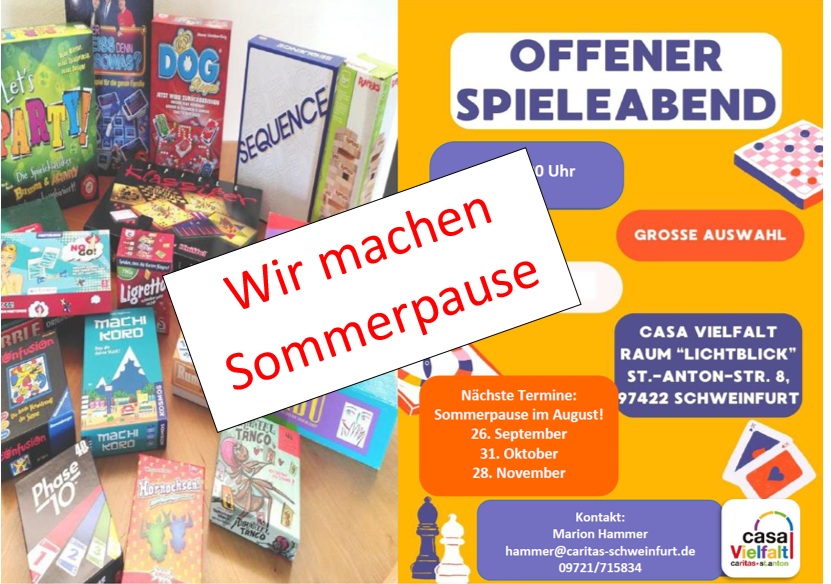 aufgrund der Sommerferien entfällt der Spieleabend am letzten Freitag im August.