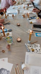 Viktoria Syrgi vom Ukrainische Verein Barwa e.V. erläuterte die Hintergründe dieser Tradition, die seit 2024 zum immateriellen Kulturerbe der Menschheit der Unesco gehört. Frau Syrgi erklärte die Bedeutung der Muster und Farben und ermutigte die Teilnehmenden am Workshop, eigene Ideen umzusetzen. Schritt für Schritt erläuterte sie, wie die zerbrechlichen Kunstwerke mit einem „Pysatschok“ und heißem Wachs beschriftet und anschließend eingefärbt werden.